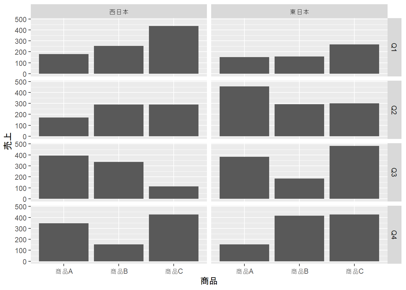 facet_grid(四半期 ~ 地域)